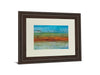 Serene Horizon invites you into a tranquil world where vibrant bands of blue, green, and burnt orange blend seamlessly, evoking the calm of nature's landscapes. This contemporary abstract piece is enhanced by layered textures and subtle drips that add depth and intrigue, making it a captivating focal point for any living room or office. Framed in a rich cinnamon mocha wood with a cream double mat and premium real glass, it offers a polished gallery-style finish that elevates both color and detail, ready to bring sophistication and a modern touch to your space.