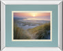 Experience the calm of dawn with this captivating coastal scene, where soft sunlight gently illuminates sandy dunes and tranquil waves. The misty horizon blends pastel hues of blue, beige, and cream, evoking a serene atmosphere that invites quiet reflection. Encased in a sleek mirrored frame with double matting, this piece combines contemporary elegance with the soothing beauty of nature, making it a perfect addition to any living room, bedroom, or office seeking a peaceful, refined touch.