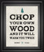 Step into the comforting embrace of rustic living with this framed wall art featuring the timeless quote, “Chop your own wood and it will warm you twice.” The bold, vintage-style typography is accented with subtle teal details and set against a cream background, evoking a sense of simplicity and strength. Framed in a sleek midnight aura finish, this piece adds depth and character to any living room, den, or cabin retreat. Crafted with premium real glass and ready to hang, it’s a perfect blend of inspiration and cozy charm that invites you to appreciate the warmth of self-reliance and the beauty of contemporary rustic design.