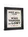 Discover the timeless allure of adventure with this framed wall art featuring the iconic quote, "Not all those who wander are lost." The bold typography is set against a rustic beige background, accented with subtle compass and arrow details that evoke a spirit of exploration. Encased in a sleek midnight aura frame with premium real glass, this piece blends contemporary style with enduring inspiration, perfect for energizing your living room, office, or study. Expertly crafted and ready to hang, it invites you to embrace the journey and celebrate the wanderer within.