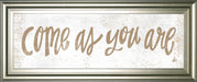 Celebrate the beauty of authenticity with this "Come As You Are" framed wall art, designed to inspire and uplift any space. The piece features a wide mirrored frame that adds a touch of elegance and depth, perfectly complementing the warm beige typography against a subtly distressed white background. Crafted with premium glass to protect the graphic art printed on fine paper, this artwork is both durable and visually striking. Ideal for living rooms or entryways, it brings a welcoming and motivational presence to your home, thoughtfully assembled and ready to hang.
