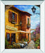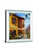 Step into the charm of a quaint European courtyard where warm sunlight bathes textured walls and inviting café tables await beneath a bright blue sky. This traditional oil painting captures the essence of leisurely afternoons with vibrant flowers and rustic architecture, framed elegantly in a sleek mirrored border that reflects light and adds a modern touch. Perfect for living or dining spaces, the premium real glass preserves every vivid detail, making this piece a timeless expression of warmth and sophistication in your home.