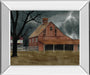 Step into the evocative world of a stormy countryside evening with this captivating framed wall art. The scene centers on a traditional red barn, its weathered wood glowing warmly against a backdrop of dark, rain-filled skies pierced by jagged lightning. A leafless tree in the foreground adds a haunting silhouette, while the mirrored frame reflects subtle light, enhancing the artwork's depth and drama. Perfect for spaces that crave a touch of rustic mystery and atmospheric charm, this piece invites you to experience the raw beauty and power of nature from the comfort of your home or office.
