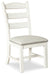 | Details | D743-45: Made of veneers, wood and engineered wood with some cast resin components, Antiqued two-tone finish, Separate extension leaf, Table extends by pulling both ends and dropping in leaf, Seats up to 8, Assembly required, D743-01: Made with wood and engineered wood, Distressed, chipped white finish, Ladderback styling, Polyester upholstery over foam cushioned seat, Assembly required, | |