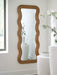 Reflect your taste for contemporary yet simple style with this floor mirror. The frame's carved wave design brings visual intrigue without being too flashy, while its brown finish has a universal appeal. And the mirror's full-length size lets you check your entire look from head to toe. Hang it vertically or horizontally to change up the vibe.