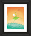 Step into a world of enchantment with this delightful depiction of a fairy mid-dance on a vibrant green hill under a glowing orange sky. The playful figure, adorned in a bright green dress with delicate wings, reaches out to a small purple bird, capturing a moment of pure joy and imagination. This charming contemporary drawing is framed in a deep midnight aura frame that enhances its whimsical appeal, making it an ideal addition to any child's room, nursery, or playroom. Crafted with premium real glass and expert American craftsmanship, this ready-to-hang piece brings a magical burst of color and wonder, inspiring creativity and happiness for both children and adults alike.
