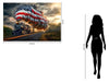 This striking wall art captures a powerful scene of a vintage steam locomotive billowing smoke shaped like the American flag, blending history with patriotic symbolism. Printed on durable tempered glass, the high-definition photograph offers vivid colors and sharp detail, creating a dramatic focal point for any living room or office. Its frameless design and included sawtooth hangers provide a sleek, modern look and easy installation, while each purchase supports a charitable cause, donating a meal to a hungry American child. Elevate your space with this contemporary tribute to Americana and timeless transportation.