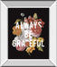 This framed wall art piece captures a vibrant bouquet of flowers set against a deep black background, creating a striking visual contrast. The colorful arrangement of red, yellow, white, and green blooms is overlaid with the bold, inspiring message “Always Be Grateful,” inviting reflection and positivity. Encased in a sleek 2.5-inch mirrored frame, the artwork gains a modern, reflective edge that adds depth and elegance to any living room, bedroom, or office space. Crafted with premium real glass and ready to hang, this piece blends contemporary style with heartfelt inspiration, making it a meaningful addition to your home or workspace.