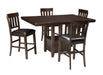 Modern sophistication, beautifully served. This counter height extension table raises the bar with a simply striking design and rich, dark finish. Removable leaf stretches the possibilities. Built-in shelf stacks up as additional storage space.