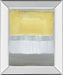 Halflight I invites a serene balance of soft hues and modern elegance into your space. This contemporary abstract piece features layered blocks of muted yellow, silver, and gray tones that evoke calm and sophistication. Encased in a sleek 2.5-inch mirrored frame, the artwork gains depth and a luxurious reflective quality, perfect for enhancing any living room, office, or bedroom. Crafted with premium real glass and durable materials, it arrives ready to hang, offering effortless style and expert craftsmanship made in the USA.