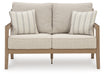 This loveseat is a beautiful addition to any outdoor living space. Effortless in its simplicity, this piece echoes your easygoing sensibilities. Combining durable, cutting-edge engineered materials, its Weatherwood construction enhances the contemporary design. Rest assured, the thick cushions and accent pillows are wrapped in high-performance fabric that’s fade-resistant, stain-resistant and a breeze to clean. Pair with the matching sofa and swivel lounge chair for a spectacular seating arrangement.