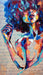 A vibrant portrait bursting with dynamic, hand-embellished brushstrokes in reds, blues, oranges, and teals, perfect for adding bold energy to modern spaces.