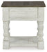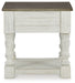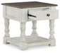 What a fresh interpretation of country classic style. Inspired by American farmhouse craftsmanship, but with an elevated sensibility, this square end table blends distinctive details such as turned post accents and raised drawer fronts for a substantial look that feels right at home. Those who appreciate rustic character should take note of the table’s thick crown moulding, beautified with a vintage two-tone finish. Robust legs lend a hearty, substantial feel ready to withstand the test of time.