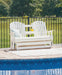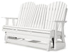 Drift away from everyday worries and into outdoor bliss with this glider loveseat. Dressed in a crisp white, the Adirondack-inspired design has a classic feel. It weathers sunny summer days and cozy winter nights with durable MEGA-TUFF® HDPE material. A drop-down console with integrated cup holders keeps refreshments and snacks within easy reach. With the console snapped into the back, this loveseat has even more room for enjoying lazy days in the shade.