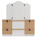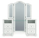 | Details | Includes 2 vanity cabinets and vanity mirror, Made with engineered wood (MDF/particleboard/plywood) and decorative laminate for the right balance of affordability and durability , Matte white finish, Decorative laminate replicates natural or man-made material surfaces with consistent color, pattern and texture , Crystal drawer knobs, 4 smooth-gliding drawers (2 in each cabinet); drawer interiors are lined with a faux linen laminate for a clean, finished look, Open shelf in each cabinet, Glass insert , Mirror features ambient white LED lighting with brightness options, Safety is a top priority, clothing storage units are designed to meet the most current standards for stability, ATM F 2057 (ASTM International), Drawers extend out to accommodate maximum access to drawer interior while maintaining safety, Power cord included; UL Listed, Minor assembly required | |