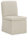 Enjoy home-cooked meals in style on this urban contemporary dining chair. Add it to a dining table or use as extra seating for impromptu entertaining. Covered in a warm charcoal gray woven polyester fabric with a comfortably cushioned seat and back, this chair features a fully upholstered skirt, a pleated back and casters for easy mobility. It’s designed for modern tastes with an urban vibe.