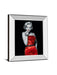 Step into a world of timeless elegance with this captivating portrait that highlights a striking figure in a vibrant red dress and matching lips. Set against a deep black background, the image is framed by a sleek mirrored border that adds a touch of luxury and depth. This piece effortlessly blends classic glamour with contemporary style, making it a perfect statement for living rooms, bedrooms, or offices. Crafted with premium materials and expert attention to detail, it arrives ready to hang and transform your space with bold sophistication and artistic flair.