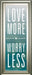 This framed wall art features the uplifting message "Love More Worry Less" in bold white typography set against a soothing gradient of blues and grays. The elegant silver frame with a subtle metallic finish enhances its contemporary style, making it a perfect addition to living rooms, bedrooms, or offices. Crafted with premium materials including real glass and MDF, this piece promises durability and a polished look. Ready to hang and proudly made in the USA, this artwork invites you to embrace positivity and calm in your daily life.