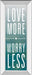 Transform your living space with this inspiring framed wall art that encourages a positive mindset with the message "Love More Worry Less." The calming gradient of blues and grays creates a serene backdrop for the bold white typography, while the mirrored frame adds a sophisticated touch that reflects light and enhances the room’s ambiance. Crafted with premium real glass to protect the vibrant graphic art, this vertical piece is ready to hang and perfect for adding a modern, motivational accent to any living room, bedroom, or office. Its contemporary style and meaningful message make it a timeless addition to your decor.