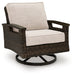 Looking for that special spot to relax and entertain on your deck or patio? Then you'll love the Drakes Beach outdoor swivel rocker lounge chair. With beautifully textured resin wicker over a sturdy aluminum frame, it brings so much style and warmth to your outdoor space. The thick, comfortable cushions are covered in cleanable, UV-resistant Nuvella® fabric, so you can spend less time worrying and more time chilling. What a smart and stylish way to create a beautiful, lasting space for everyone to enjoy.