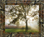 Step into a tranquil morning scene with this captivating framed photographic print, where the gentle sun peeks through the branches of a majestic tree. The soft light filters through autumn leaves, casting delicate shadows over a lush green meadow and rich foliage, inviting a sense of peace and renewal. Encased in a unique brown camo frame with crystal-clear glass, this artwork brings warmth and depth to any living room, bedroom, or office, making it a timeless reminder of nature's quiet beauty and the calm that comes with a new day.