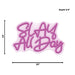 Illuminate your space with the bold and vibrant “Slay All Day” neon typography wall art. This contemporary mixed media piece combines acrylic artwork with striking neon lighting, creating a captivating glow that energizes any room. Powered by a plug-in connection with an easy on/off switch, it delivers a permanent radiant display—ideal for living rooms, glam rooms, salons, boutiques, and home offices. Arriving fully assembled with professional mounting hardware, this statement piece brings a powerful fusion of art and attitude to your décor, inspiring confidence and style day and night.