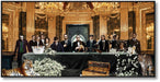 This striking "Gangster Movie Icons Art in Lavish Setting" captures a dramatic tableau of iconic gangster film characters set against an opulent, gilded backdrop. The piece is expertly crafted on a durable MDF canvas base, enhanced with hand-applied foil accents that add texture and depth, all sealed beneath a glossy finish to amplify the rich colors and luxurious details. Framed in sleek black polystyrene, this graphic art is ready to display in your living room, office, or entertainment space, bringing a bold, contemporary edge and cinematic flair to your décor.