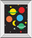 Transform your child's space into a vibrant universe with this playful cosmic wall art. Featuring bright, colorful planets, stars, and a crescent moon against a deep black backdrop, this piece sparks imagination and adventure. The sleek mirrored frame adds a modern touch while protecting the vivid graphic under premium real glass, making it a lasting source of wonder and joy in any kids' bedroom or playroom.