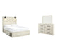| Details | B192B1: Includes dresser with mirror, Made of engineered wood (MDF/particleboard) and decorative laminate, Wispy white finish over replicated oak grain with authentic touch, 6 smooth-gliding drawers, Drawer interiors are lined with a faux linen laminate for a clean, finished look, Large-scale hardware with dark finish, Mirror attaches to back of dresser, Assembly required, B192B17: Includes headboard, footboard, side storage, rail and slats, Made of engineered wood (MDF/particleboard) and decorative laminate, Wispy white finish over replicated oak grain with authentic touch, Large-scale hardware with dark finish, 2 decorative sconce lights, LED with 3 AA batteries, 2 smooth-gliding storage drawers, 2 storage cubbies, 2 slim-profile USB charging ports, Power cord included; UL-listed, Bed does not require additional foundation/box spring; accommodates most zero clearance adjustable bases with the addition of a bunkie board, Mattress available, sold separately, Assembly required, | |