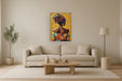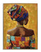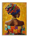This hand-painted oil canvas captures the elegant profile of an African woman adorned in vibrant traditional attire against a rich orange backdrop. The artist's skilled brushwork and hand-applied accents bring texture and depth, highlighting the colorful headwrap and intricate jewelry. Framed in a sleek gold polystyrene frame, this piece arrives ready to hang and adds a bold, contemporary statement to any living room, bedroom, or office. Each purchase supports a social cause, donating a meal to a hungry American child, making this artwork both beautiful and meaningful.
