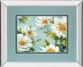 Serene Blooms captures the delicate beauty of white flowers gently unfolding against a tranquil blue-green background. This horizontal wall art is framed in a sleek mirrored border that not only reflects light but adds a touch of modern elegance to any space. The double matting in complementary shades of blue creates depth and a refined gallery-style presentation, while real glass protects the vibrant graphic art beneath. Ideal for living rooms, bedrooms, or offices, this transitional piece blends natural charm with contemporary luxury, inviting calm and sophistication into your home decor.