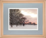 Experience the quiet beauty of a winter sunset with this captivating framed photographic print. Snow-dusted trees stand gracefully against a soft pink and orange sky, inviting a sense of calm and reflection into your home. The rose gold frame and dual mats in gray and white enhance the artwork's depth and elegance, making it a charming addition to any living room or bedroom. Protected by premium real glass and ready to hang, this piece blends rustic farmhouse warmth with timeless sophistication, perfect for creating a serene atmosphere.