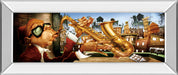 Step into a world where music and city life harmonize in perfect rhythm with this captivating framed print. Featuring a stylized saxophone player immersed in his craft against a whimsical urban backdrop, the artwork bursts with rich gold, brown, and blue tones that evoke the soulful energy of jazz. The sleek mirrored frame adds a modern touch, reflecting light and deepening the visual impact, making it a striking centerpiece for living or entertainment spaces. Crafted with premium real glass, this piece ensures vibrant color and intricate detail, inviting music lovers and art enthusiasts alike to experience the pulse of the city in their own home.