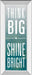 Transform your space with this inspiring framed wall art that boldly declares “Think Big Shine Bright.” Set against a calming gradient teal background, the striking white typography offers a powerful message of motivation and positivity. Encased in a sleek 2.5-inch mirrored frame, this piece adds a touch of modern elegance and reflective depth to any living room, office, or bedroom. Crafted with premium real glass, it ensures vibrant colors and sharp details that endure over time. Ready to hang and thoughtfully made in the USA, it’s the perfect accent to uplift and energize your environment with contemporary style.