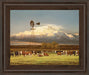 Step into the peaceful rhythm of rural life with "Summer Pastures," a captivating scene where cows graze contentedly beneath a towering windmill set against a vast, cloud-streaked sky. The warm cinnamon mocha frame enriches the natural palette of greens, browns, and soft blues, drawing you into the serene countryside ambiance. This graphic art piece, expertly framed with premium real glass, is perfectly sized to bring a touch of traditional charm and pastoral calm to your living room, dining area, or farmhouse kitchen, inviting moments of quiet reflection and connection with nature's simple beauty.