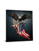 “Patriot” is a striking piece of contemporary wall art featuring a powerful bald eagle clutching a flowing American flag, symbolizing strength and freedom. Printed and hand-embellished beneath tempered glass, this artwork offers a sleek, dimensional finish that enhances its vivid colors and intricate details. Durable and safe, the tempered glass surface adds depth and shine while protecting the image, making it perfect for living rooms, offices, or dens. Ready to hang with sawtooth hangers, this piece also supports a meaningful cause, donating a meal to a hungry American child with every purchase.