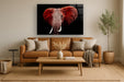 Red Elephant is a striking piece of contemporary wall art printed and hand-embellished beneath tempered glass for a sleek, dimensional finish. This durable design features a vivid image of an elephant with deep red ears against a black background, offering a bold and captivating focal point for any living room or office. Ready to hang with sawtooth hangers, it combines safety, strength, and style while supporting a social cause by donating a meal to a hungry child with each purchase.