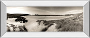 Step into a tranquil coastal escape with this panoramic view of windswept dunes and a serene beach horizon. Rendered in soothing sepia tones, the photograph captures the gentle textures of sand and grass under a vast sky, evoking a peaceful, reflective mood. Framed in a sleek mirrored border with real glass protection, this piece adds an elegant, contemporary touch while preserving the timeless beauty of nature. Perfect for living rooms, offices, or bedrooms, it invites calm and sophistication into any space, offering a quiet reminder of the sea's enduring charm.